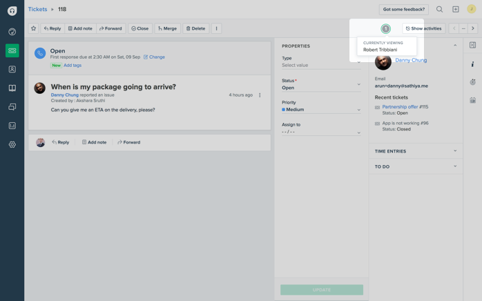 Agents are always informed on who is currently working on a ticket so multiple people don’t end up wasting time trying to solve the same tickets.