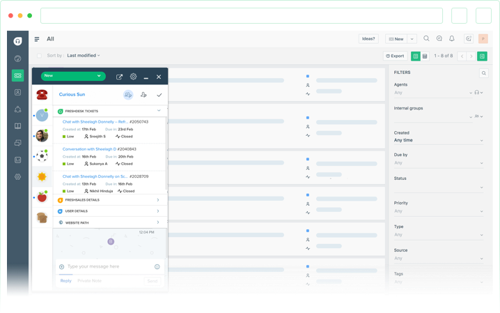 Assign conversations to team members or groups. Respond to customers with words, emojis, or images. All of this, from the messenger inside Freshdesk.