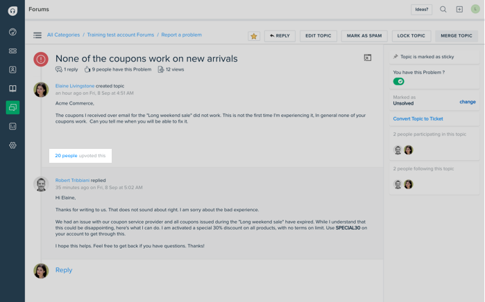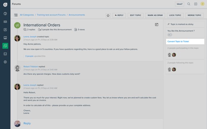 Convert critical issues raised in the community into tickets so they get the required attention.
